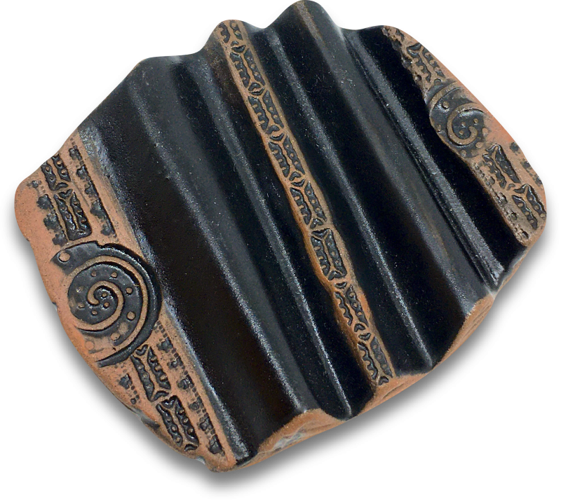 Farbe: matt-schwarze Glasur auf rotem Ton mit gestempeltem Dekor